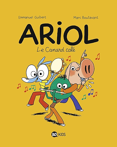 Le canard calé - EMMANUEL GUIBERT, RÉMI CHAURAND ~ Le canard calé - EMMANUEL GUIBERT, RÉMI CHAURAND - Kwax, c’est un copain de classe d’Ariol. Vous ne pouvez pas le manquer, c’est le caneton de la bande. Et surtout, c’est un fou de musique, lui-même musicien hors pair. Ecouteurs sur les oreilles et flûte au bec, il déclenche parfois chez Ariol une petite démangeaison musicale.